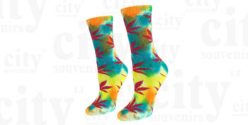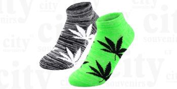 Moteriškos vaivorykštės spalvos kojinės su kanapių lapais