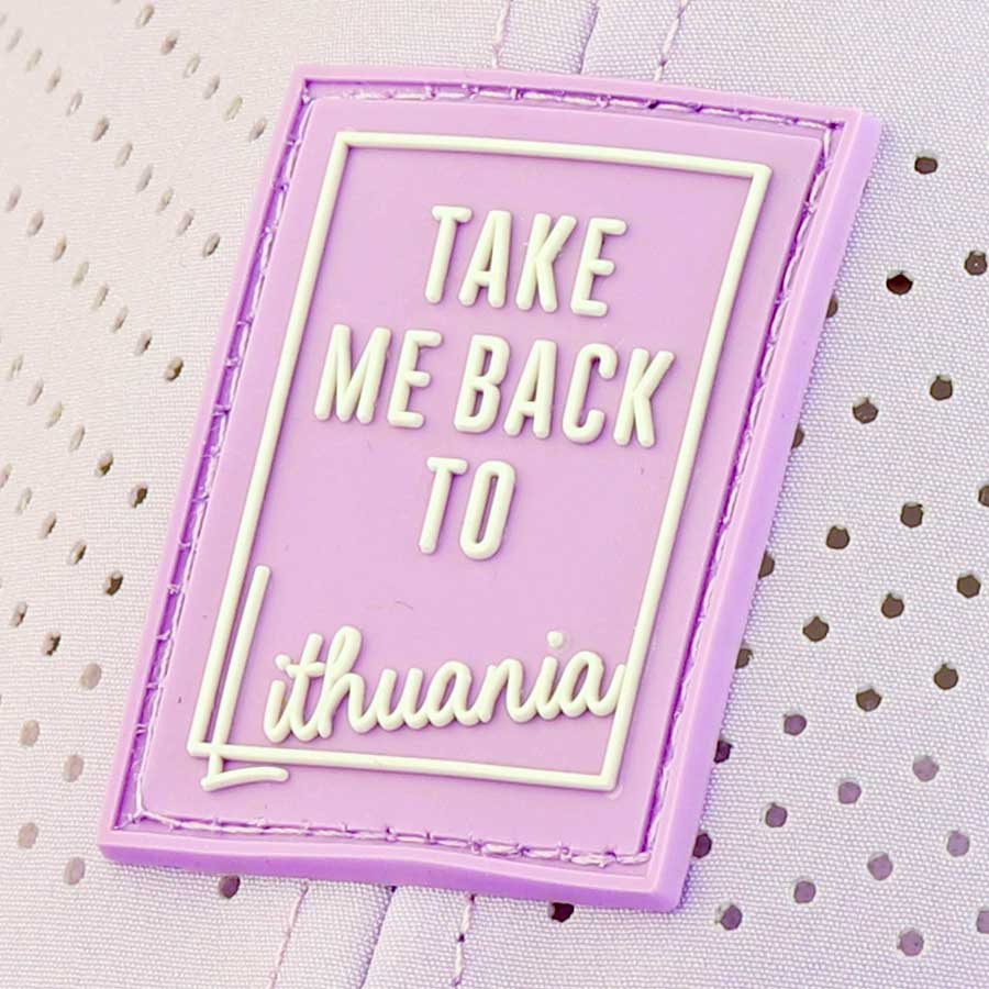 Kepurės priekyje esantis dekoratyvinis silikoninis logotipas su užrašu „Take Me Back To Lithuania“ sukuria emocinę žinutę apie keliones ir prisiminimus iš Lietuvos. Tai puikus suvenyras turistams, kurie nori parsivežti stilingą prisiminimą iš savo kelionės.
