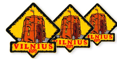 Karšto lygintuvo pagalba prilydomas siuvinėtas paveikslėlis (antsiuvas) Vilnius Gedimino pilis.