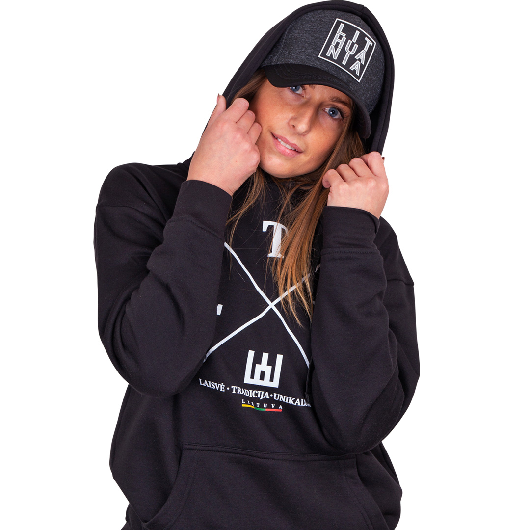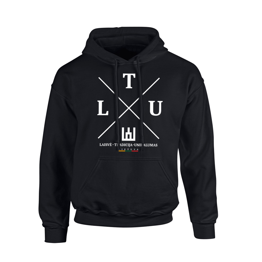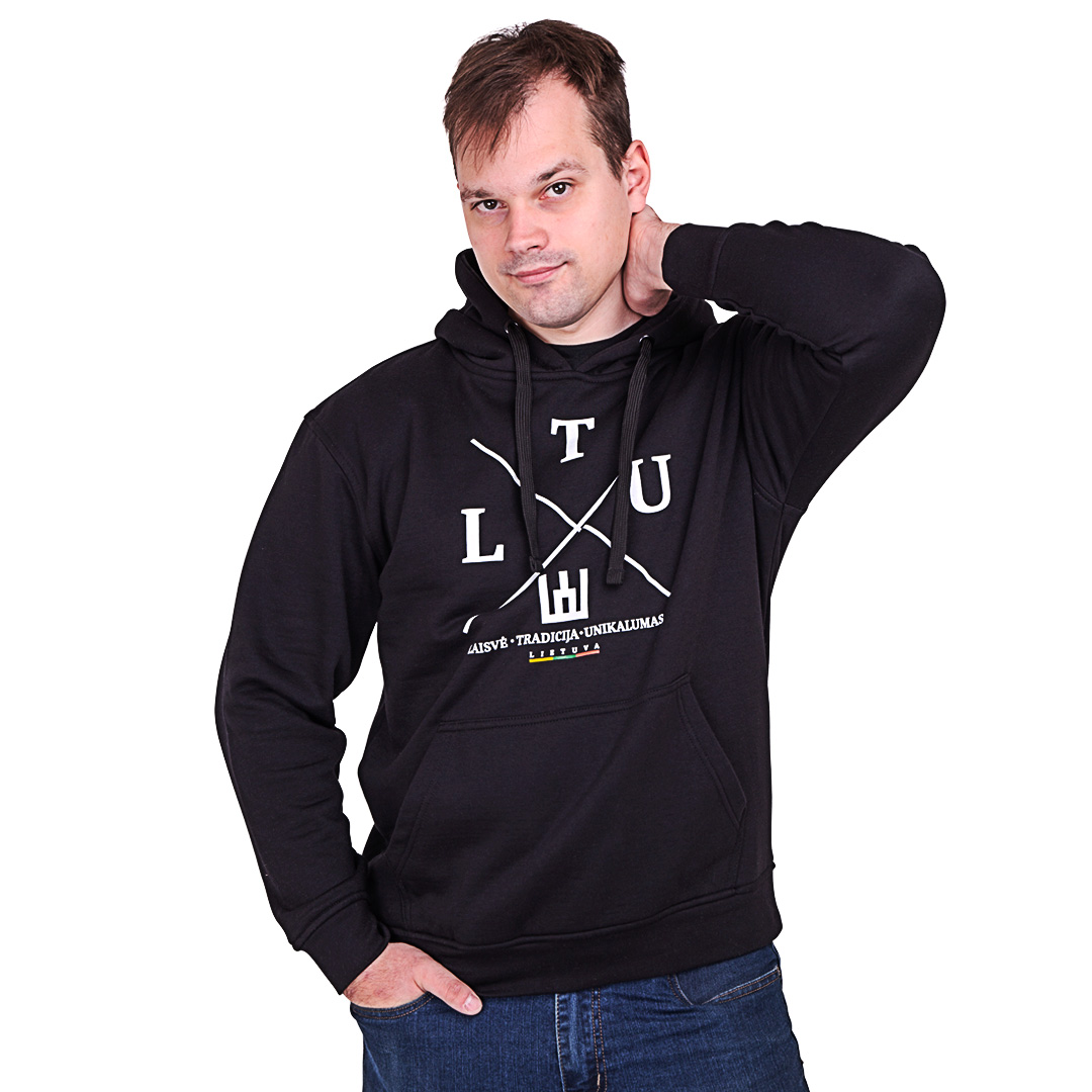 Juodas klasikinis džemperis su kapišonu „LTU”