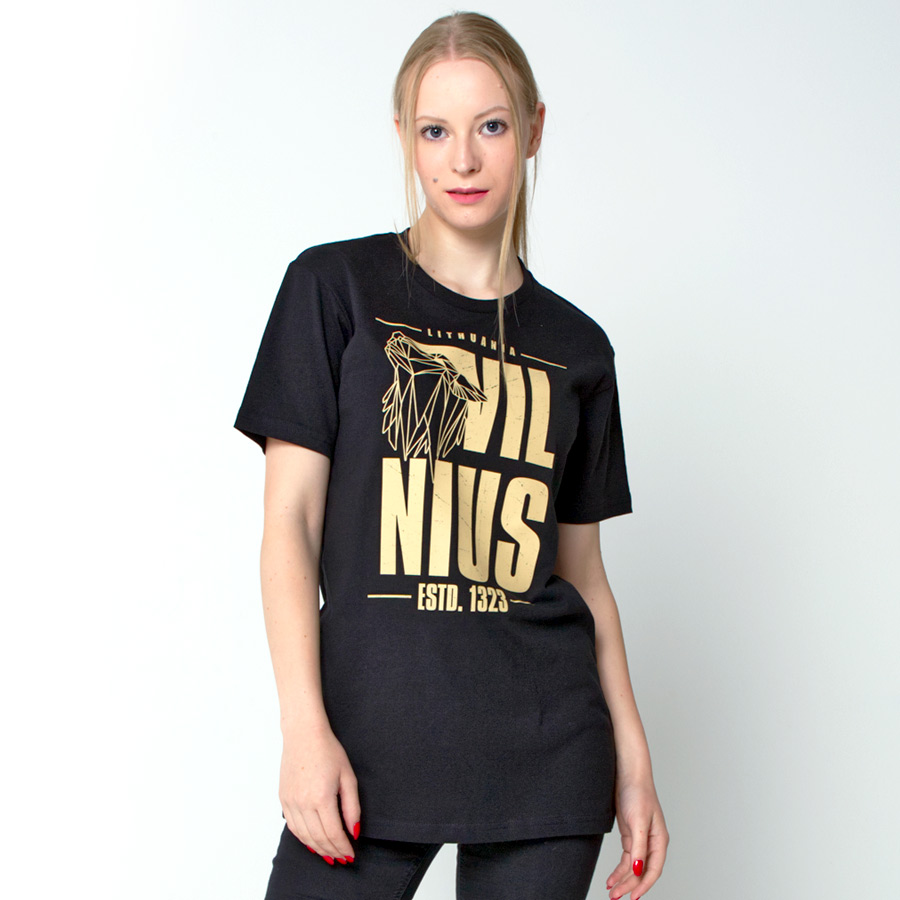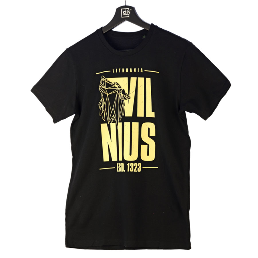 Marškinėlių priekyje išsiskiria modernus grafinis dizainas su užrašu VILNIUS ir simboliniu geležinio vilko motyvu, kuris tiesiogiai siejamas su Vilniaus įkūrimo legenda. Dizainą papildo užrašas ESTD. 1323, žymintis metus, kai Vilnius pirmą kartą paminėtas istoriniuose šaltiniuose Gedimino laiškuose.