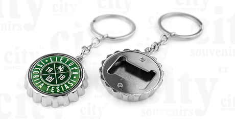 Suvenyras – kamštelio formos metalinis raktų pakabukas – butelio atidarytuvas LIETUVA .