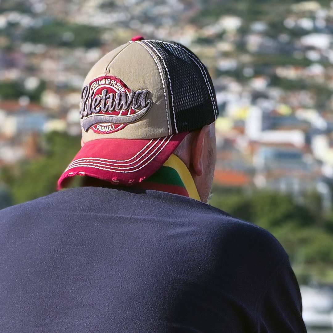 Retro stiliaus kepurė „Lietuva – Keliauk ir pažink pasaulį“ – išskirtinis aksesuaras kelionių ir laisvalaikio mėgėjams.