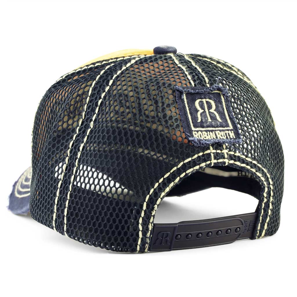Robin Ruth retro kepurė „Lietuva – Keliauk ir pažink pasaulį“ oranžinės ir mėlynos spalvos su tinkleliu. Patogi kelionėms ir kasdieniam stiliui.