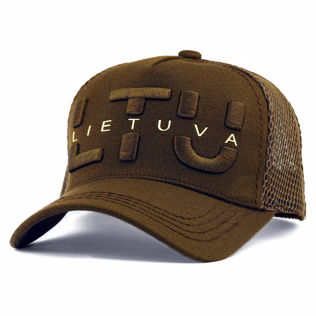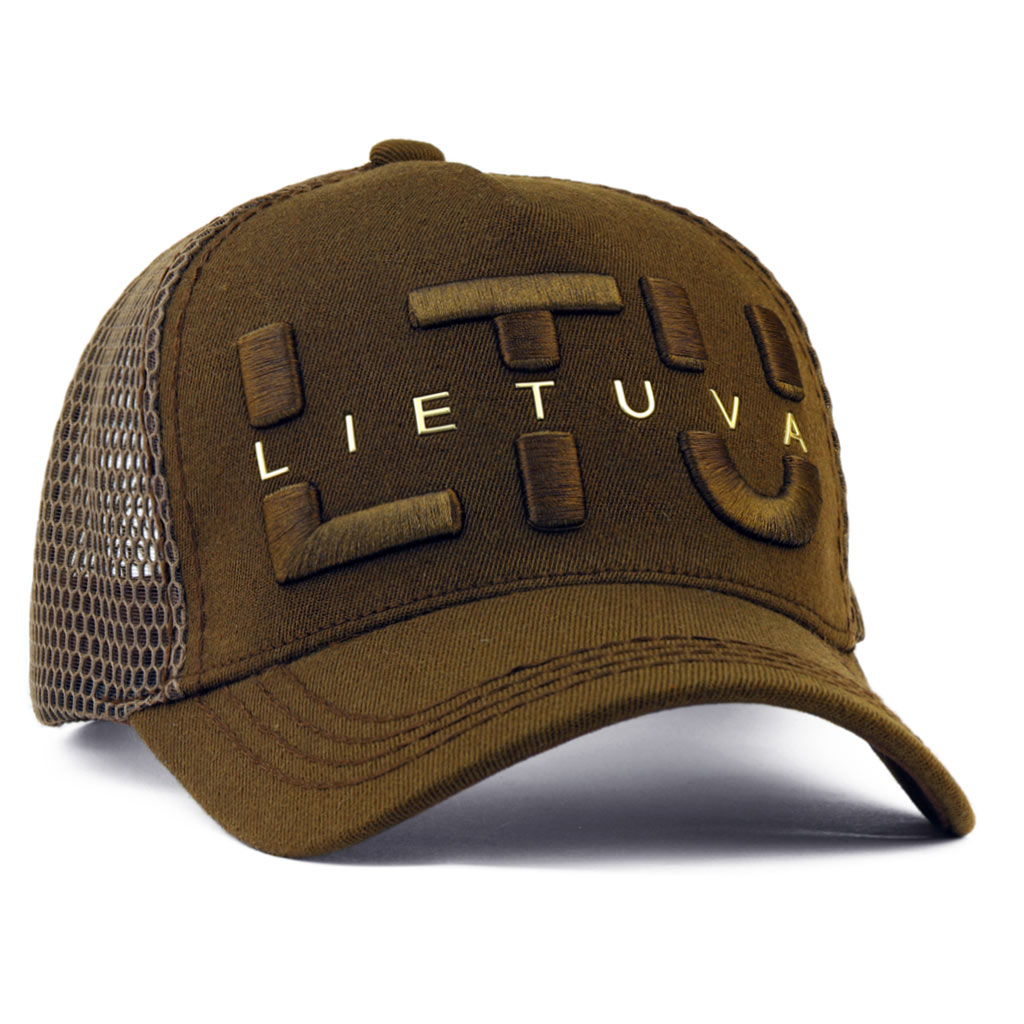 Ruda (khaki) LTU kepurė su 3D siuvinėjimu ir tinkleliu. Reguliuojamas dydis. Outdoor stiliaus modelis.