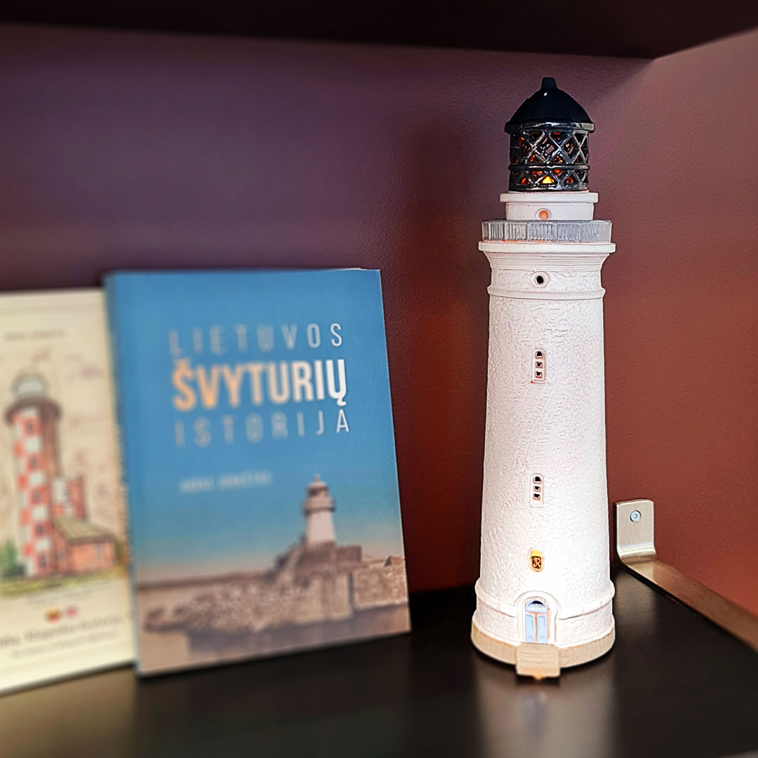 Rankų darbo Hirtshals švyturio žvakidė – subtilus skandinaviško stiliaus akcentas.