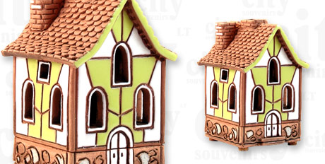 Suvenyras – keramikinis rankų darbo namelis žvakidė. Namelis taip pat pritaikytas naudoti aromatinius aliejus. Nameliai būna įvairių spalvų. Namelio išmatavimai (plotis, gylis, aukštis): 60x60x90mm