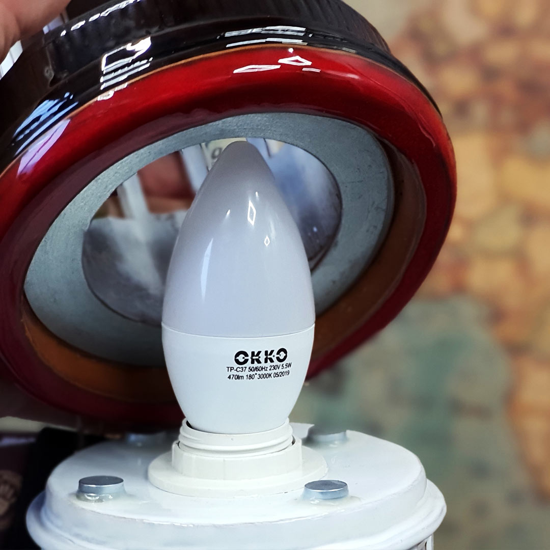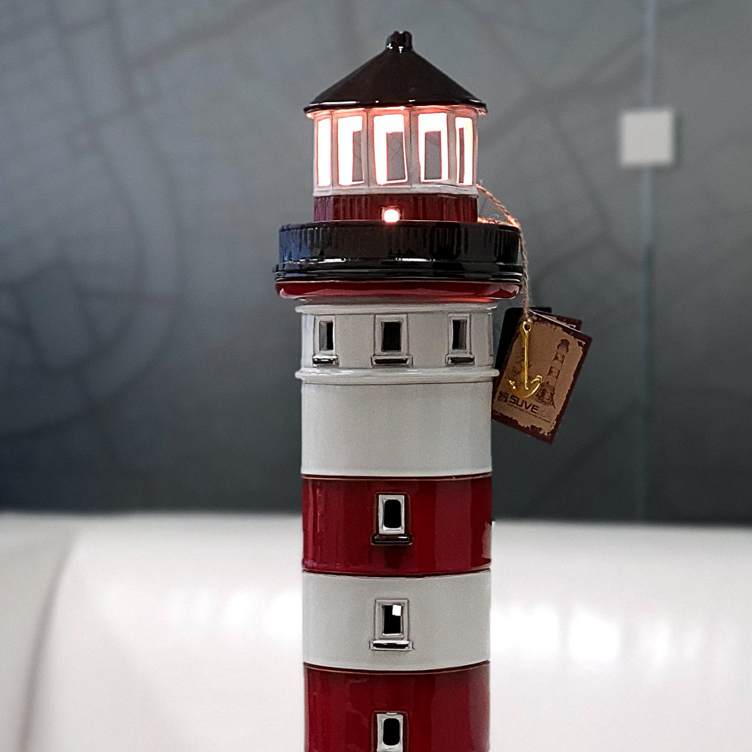 Šis šviestuvas ne tik dekoratyvus, bet ir funkcionalus – veikia nuo elektros tinklo (230V), todėl puikiai tinka kaip naktinė lempa ar išskirtinis stalo šviestuvas. Šviesa sklinda pro švyturio langelius, sukurdama šiltą ir malonų apšvietimą.