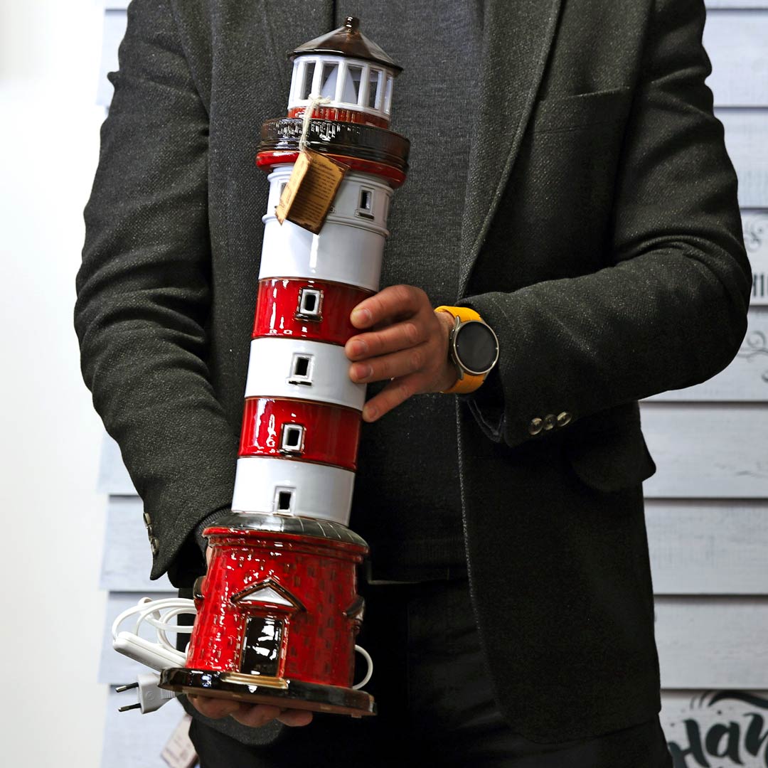 Rankų darbo Nidos švyturys – įspūdingas keramikinis šviestuvas jaukiam apšvietimui.