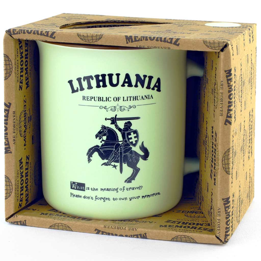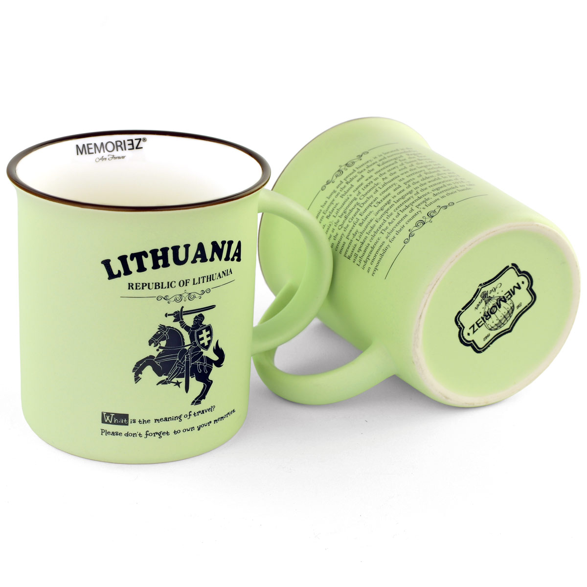 Išskirtinis keramikinis puodelis „Lithuania Vytis“ – elegantiškas suvenyras su istoriniu Lietuvos simboliu. Pastelinės spalvos suteikia modernumo, o klasikinis dizainas su Vyčiu ir užrašu „Republic of Lithuania“ kuria stiprų lietuviškos tapatybės įspūdį. Ant kitos puodelio pusės pateikiamas trumpas Lietuvos istorijos aprašymas, kuris suteikia produktui papildomos vertės turistams ir dovanų ieškantiems pirkėjams. Puodelis pagamintas iš kokybiškos keramikos, yra patvarus ir tinkamas kasdieniam naudojimui. Supakuotas į dovanų dėžutę, todėl puikiai tinka kaip paruošta dovana.