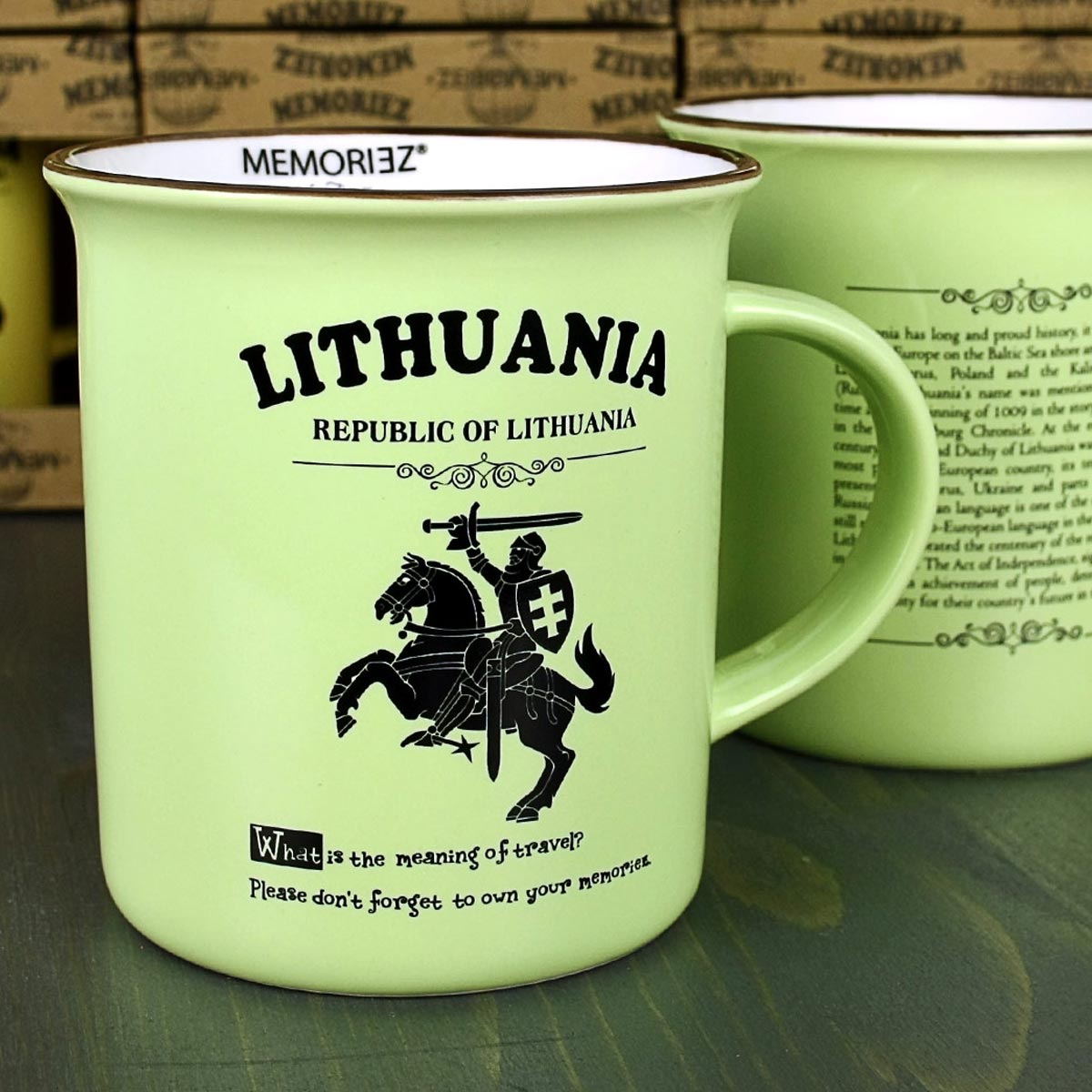 Pastelinis keramikinis puodelis su Vyčiu ir Lietuvos istorijos aprašymu. 280 ml, supakuotas dovanų dėžutėje.