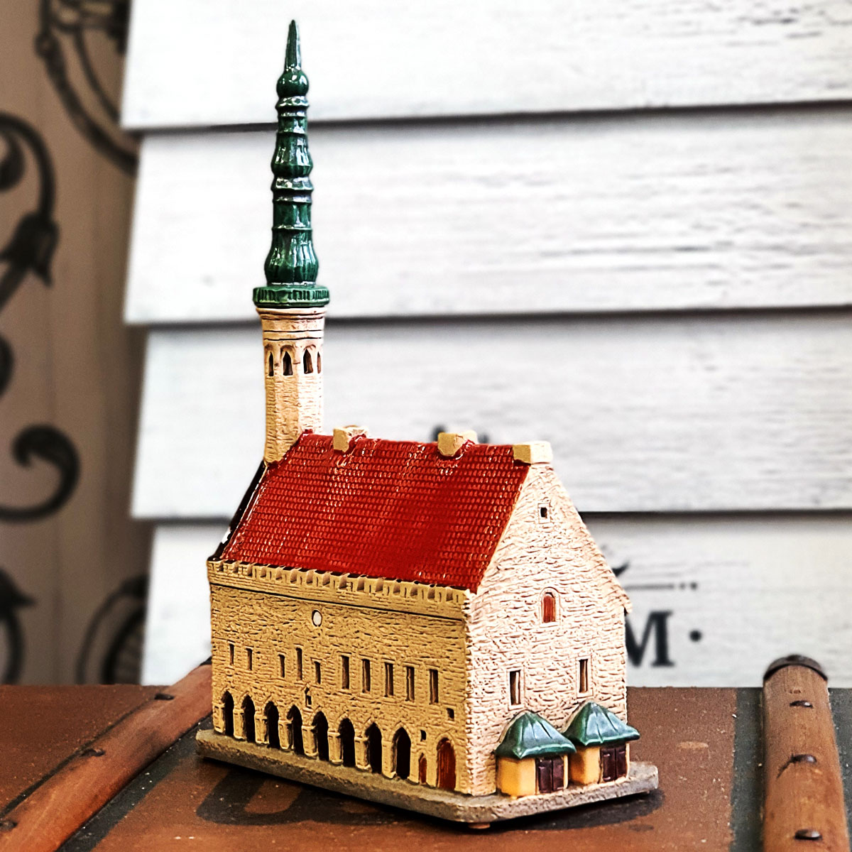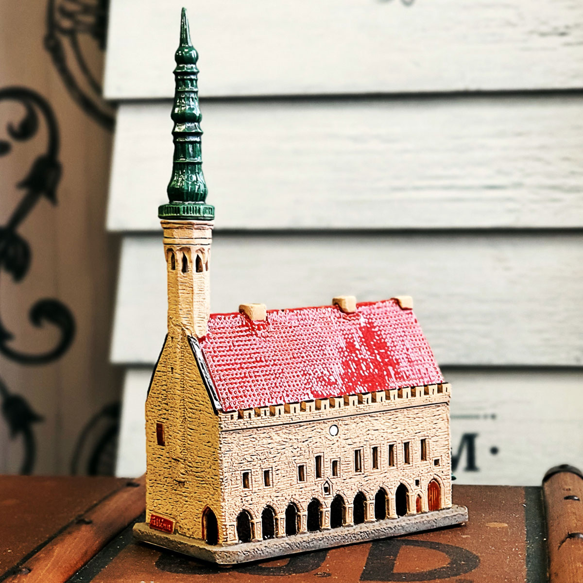 Rankų darbo keraminė Talino rotušės žvakidė – autentiškas Baltijos suvenyras, dekoracija ir jaukios šviesos šaltinis.
