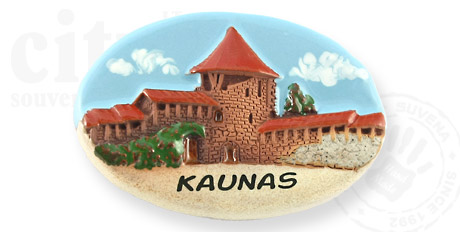 Suvenyras – keraminis magnetas Kauno pilis.
