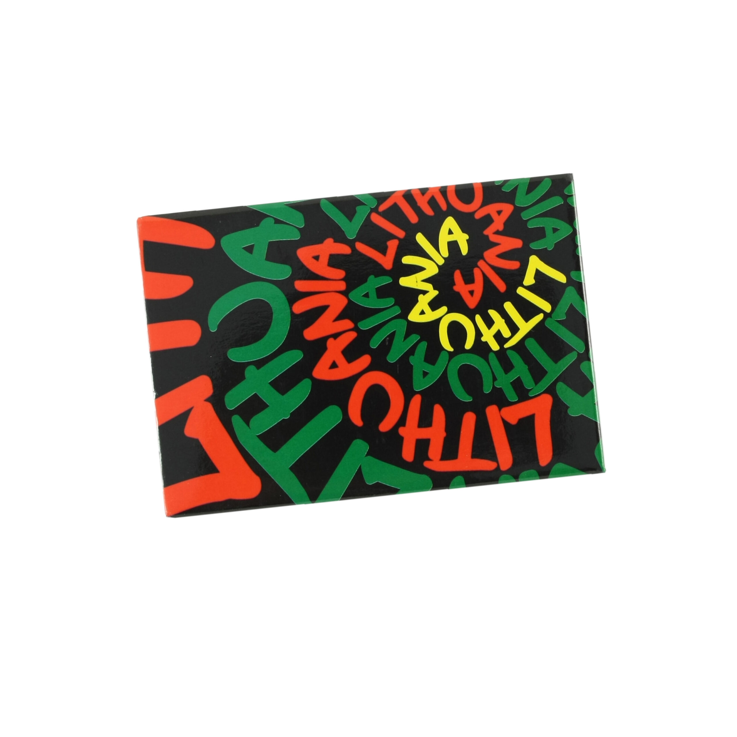 Spalvingas „Lithuania“ magnetas su moderniu tipografiniu dizainu.