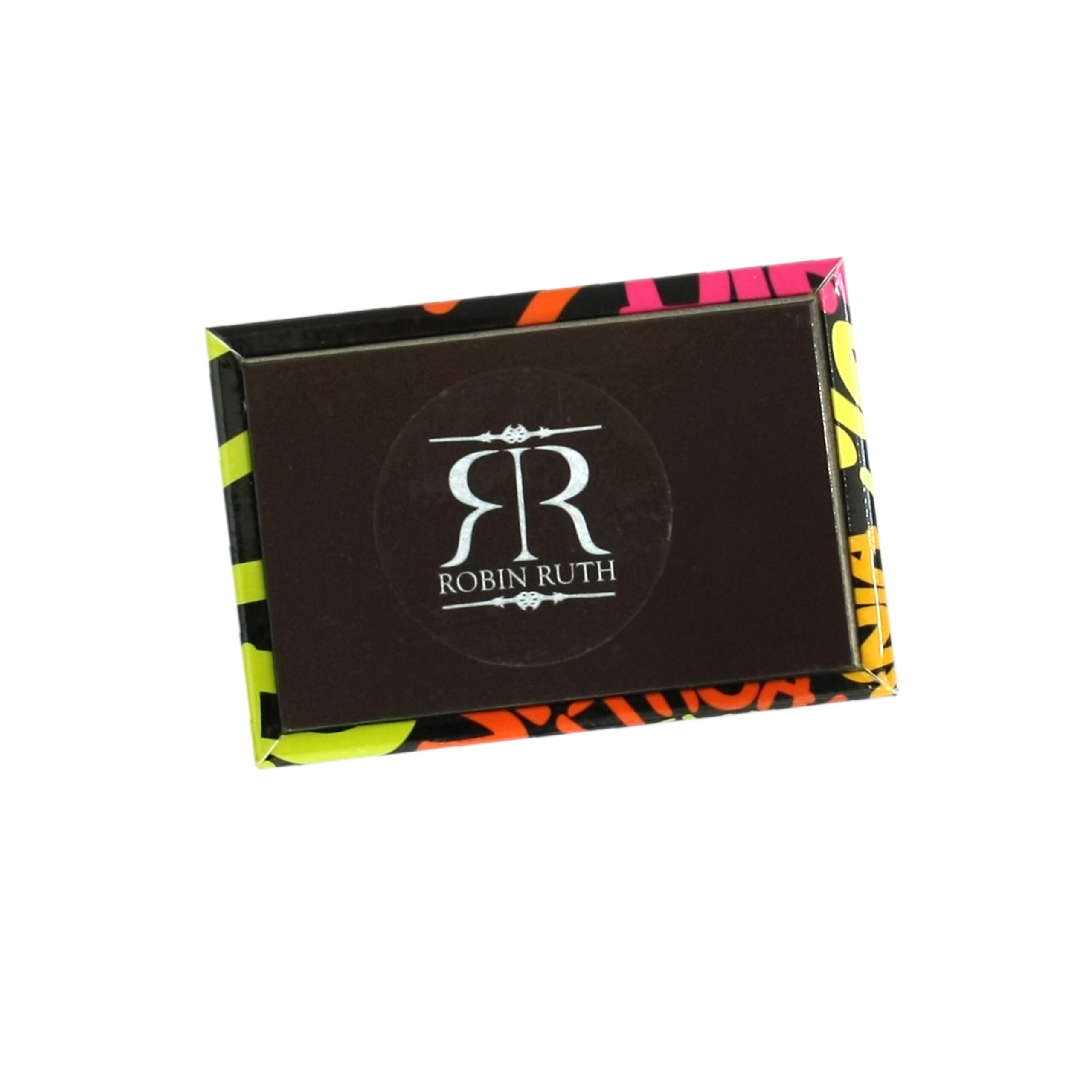 Ryškus ir modernus šaldytuvo magnetas su „Lithuania“ užrašu, sukurtas dinamišku tipografiniu stiliumi. Spalvotos raidės (žalia, geltona, raudona, oranžinė, rožinė) išdėstytos spirale juodame fone sukuria išskirtinį vizualinį efektą, kuris iš karto patraukia dėmesį. Tai šiuolaikiškas suvenyras, puikiai tinkantis turistams, ieškantiems ne klasikinio, o išskirtinio dizaino. Dėl savo ryškių spalvų ir kontrasto magnetas puikiai matomas prekybos vietoje ir skatina impulsyvius pirkimus. Originalus Robin Ruth produktas – aukštos kokybės, patvarus ir madingas aksesuaras su lietuviška tematika.