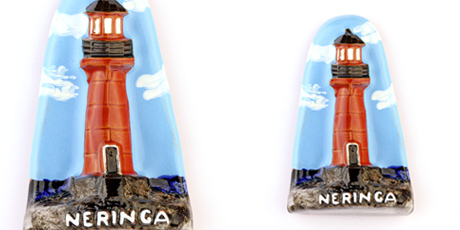 Suvenyras – keraminis magnetas Pervalkos švyturyssu užrašu Neringa.