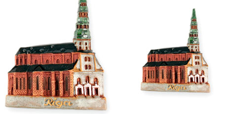 Suvenyras – keraminis magnetas Ryga. Magnetuko aukštis 8,0 cm