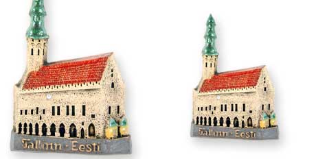 Suvenyras – keraminis magnetas Talino rotušė. Magnetuko aukštis 8,5 cm