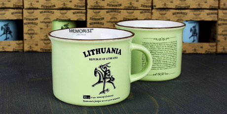 Pastelinių spalvų maži keramikiniai puodeliai su Vyčiu ir trumpai aprašyta Lietuvos istorija, antroje puodelio pusėje. Puodelių talpa 150 ml, supakuoti dovanų dėžutėje.