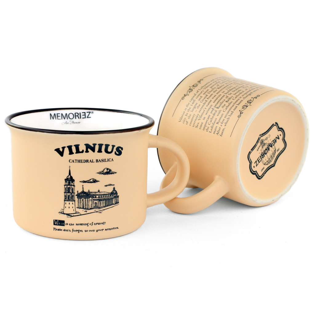 Stilingas ir šiuolaikiškas MEMORIEZ kolekcijos keramikinis puodelis „Vilnius Cathedral Basilica“ pastelinės spalvos – tai išskirtinis lietuviškas suvenyras, puikiai pritaikytas turistams ir dovanų rinkai. Puodelis dekoruotas detalia Vilniaus Arkikatedros bazilikos iliustracija bei anglišku pavadinimu, todėl yra lengvai suprantamas tarptautinei auditorijai.