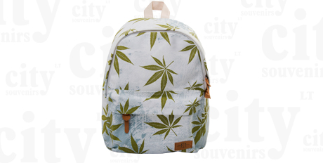 Melsva laisvalaikio kuprinė su kanapių lapais. Kuprinė paminkštinta ties nugara, reguliuojamos petnešos. Talpus centrinis skyrius. Yra priekinė kišenės, užsegama užtrauktuku.