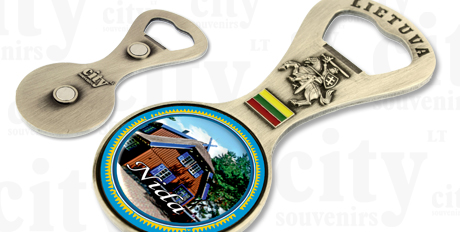 Metalinis šaldytuvo magnetas – Butelio atidarytuvas Nida Tomo Mano namas.