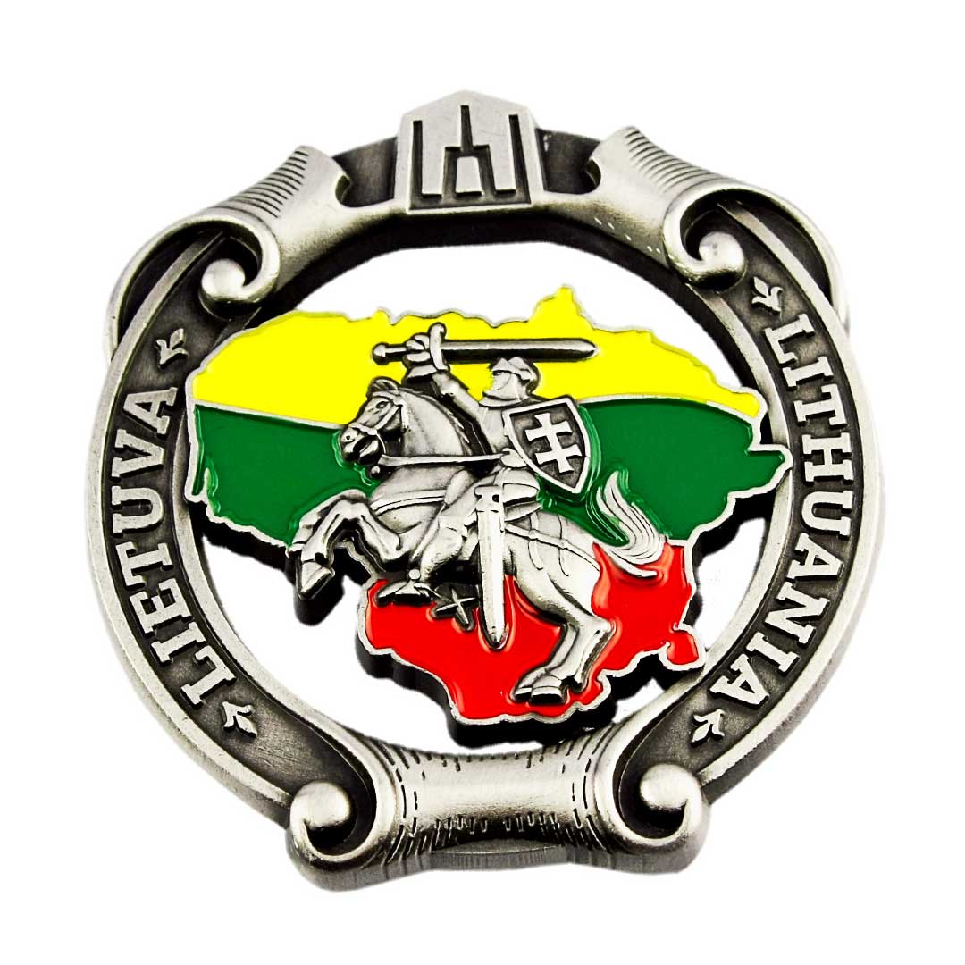 Išraiškingas metalinis magnetas su Lietuvos trispalve, Vyčiu ir žemėlapiu. Puiki patriotinė dovana ar suvenyras.