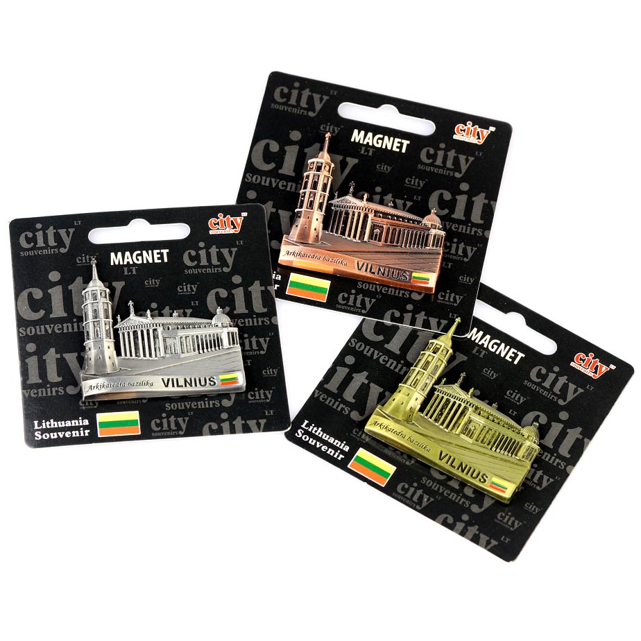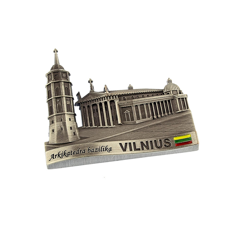 Reljefinis metalinis magnetas su Vilniaus arkikatedra bazilika – klasikinis Lietuvos simbolis jūsų kolekcijai ar dovanai.