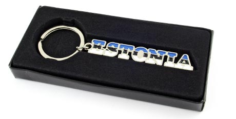 Suvenyras – metalinis raktų pakabukas ESTONIA. Pakabukas supakuotas dovanų dėžutėje.