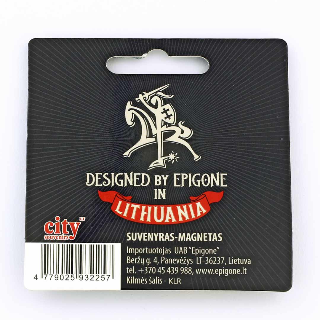 Magnetas tvirtai laikosi ant šaldytuvo ar kito metalinio paviršiaus. Puikiai papildo bet kokią suvenyrų kolekciją ir išsiskiria savo detalėmis bei išliekamąja verte.