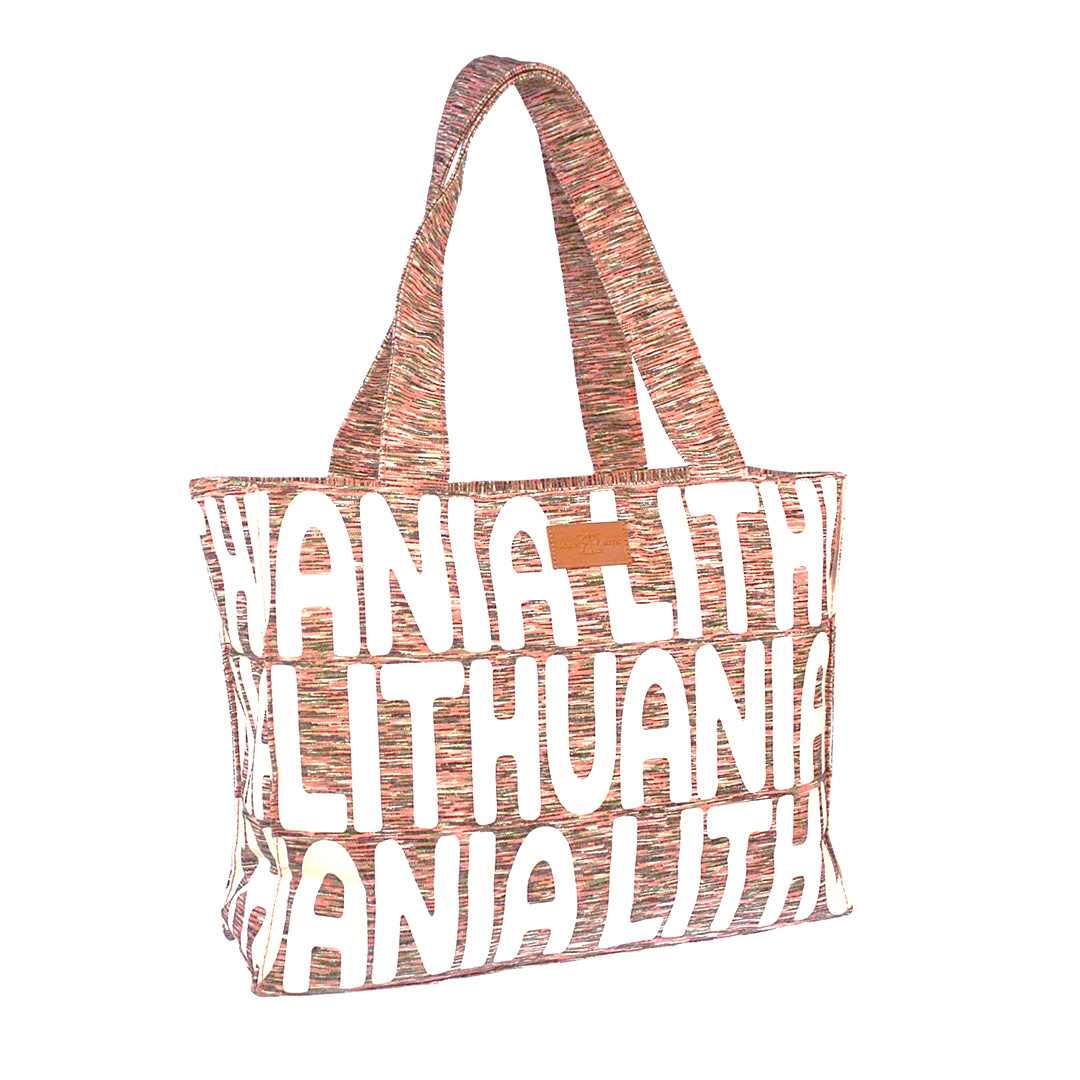 Stilinga ir talpi moteriška laisvalaikio rankinė „Lithuania“ – praktiškas kasdienis aksesuaras ir populiarus suvenyras iš Lietuvos. Rankinė pasiūta iš tvirto 100% medvilnės audinio, dekoruota dideliais moderniais „Lithuania“ užrašais, kurie suteikia rankinei išskirtinį ir lengvai atpažįstamą Lithuania suvenyrų stilių. Rankinė turi vieną pagrindinį skyrių su užtrauktuku, todėl patogu saugiai laikyti kasdienius daiktus. Viduje įrengta kišenėlė mobiliajam telefonui, leidžianti patogiai susidėti smulkius daiktus. Dėl patogių rankenų ši rankinė idealiai tinka kasdieniam naudojimui – apsipirkimui, kelionėms, pasivaikščiojimams ar laisvalaikiui. Tai Robin Ruth prekės ženklo produktas – vieno žinomiausių pasaulyje kelionių suvenyrų ir miestų atributikos gamintojų. Šio gamintojo Lithuania kolekcijos gaminiai pasižymi moderniu dizainu, aukšta kokybe ir yra itin populiarūs turistinėse vietose, suvenyrų parduotuvėse bei oro uostuose.