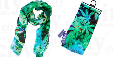Moteriškas pavasarinis/rudeninis šalikėlis – žalias/mėlynas su kanapių lapais. Labai švelni, maloni lietimui medžiaga. Tai kompanijos Robin Ruth produktas. Kokybiški, madingi aksesuarai garantuojami!