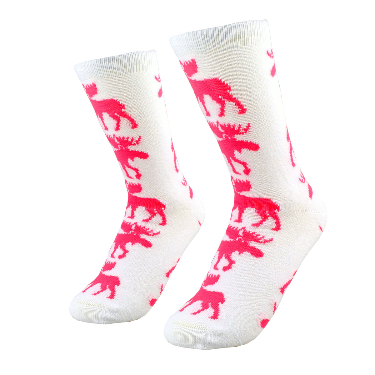 Moteriškos medvilninės kojinės su briedžiais – baltos / rožinės dydis:(36-42)