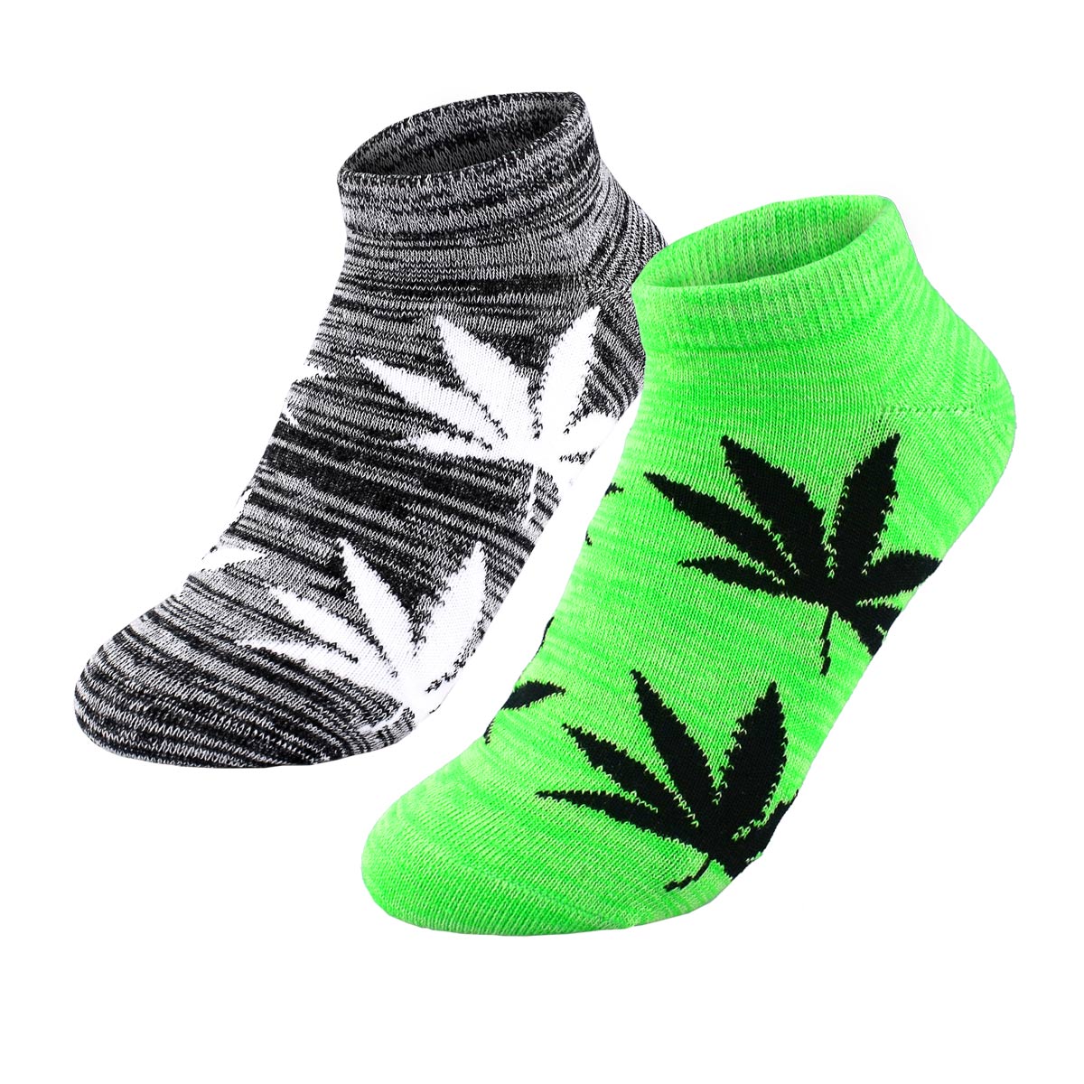 Rinkinyje rasite dvi skirtingo dizaino poras: ryškiai žalią su juodais lapais ir pilką su baltais lapų motyvais. Šis kontrastingas spalvų derinys suteikia galimybę derinti kojines prie įvairių aprangos stilių – nuo sportinio iki laisvalaikio.
