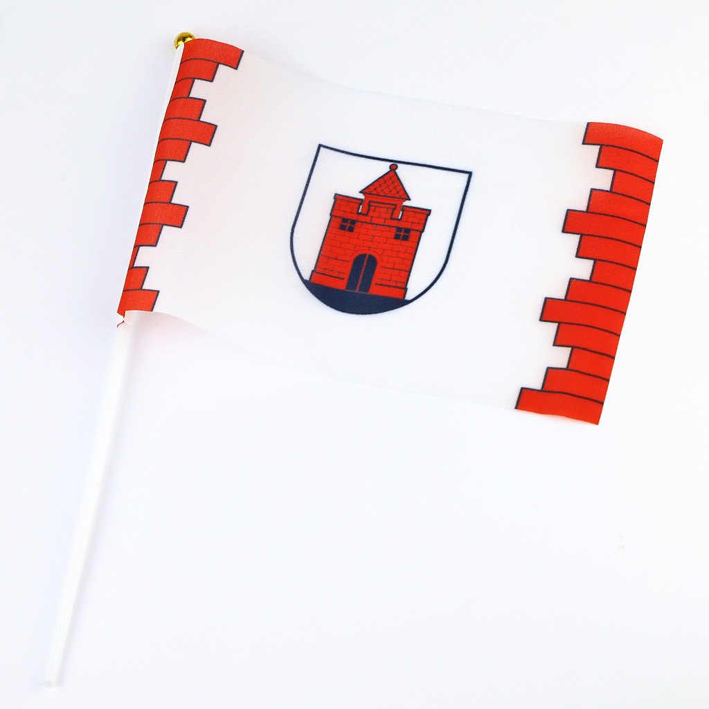 Panevėžio miesto rankinė vėliavėlė – populiarus suvenyras ir miesto atributas, tinkantis įvairioms šventėms, renginiams bei prekybai.