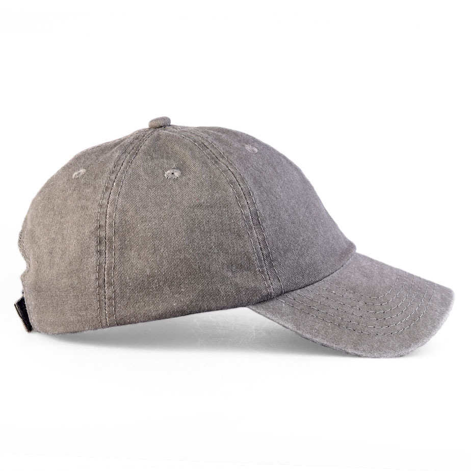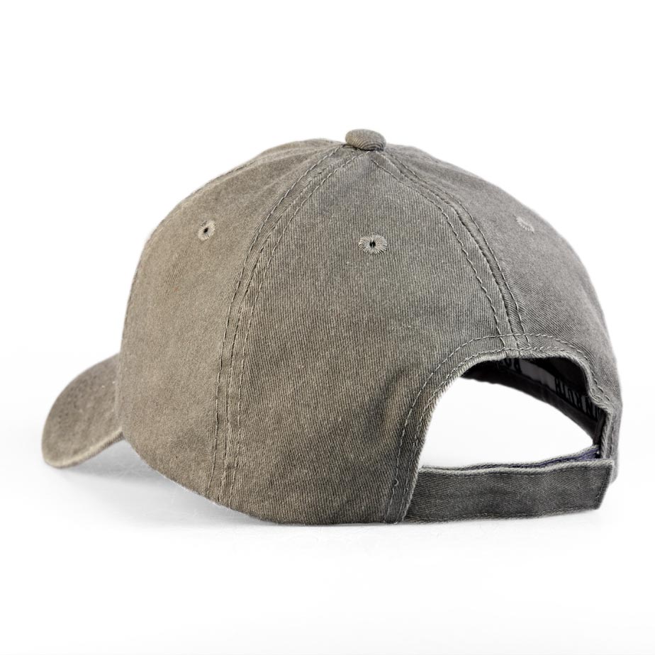 Kepurė pasižymi subtiliai sendinto audinio efektu, kuris suteikia jai modernų „washed“ stilių ir išskirtinę tekstūrą. Neutralus pilkas atspalvis puikiai dera su įvairių spalvų siuvinėtais logotipais ar aplikacijomis.