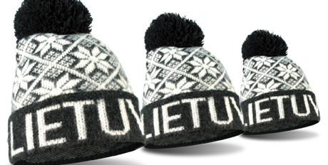 Švelnaus akrilo pilkos spalvos raštuota trumpa žieminė kepurė su kutu ir užrašu Lietuva. Sudėtis: 100% akrilas.