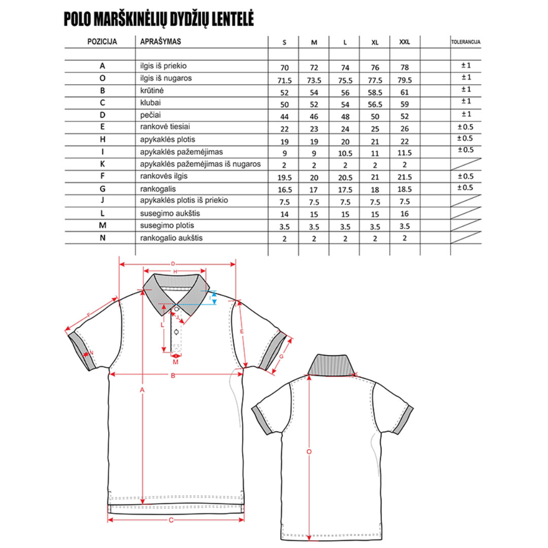 • Dizainas: LT siuvinėjimas, spauda priekyje ir nugaroje