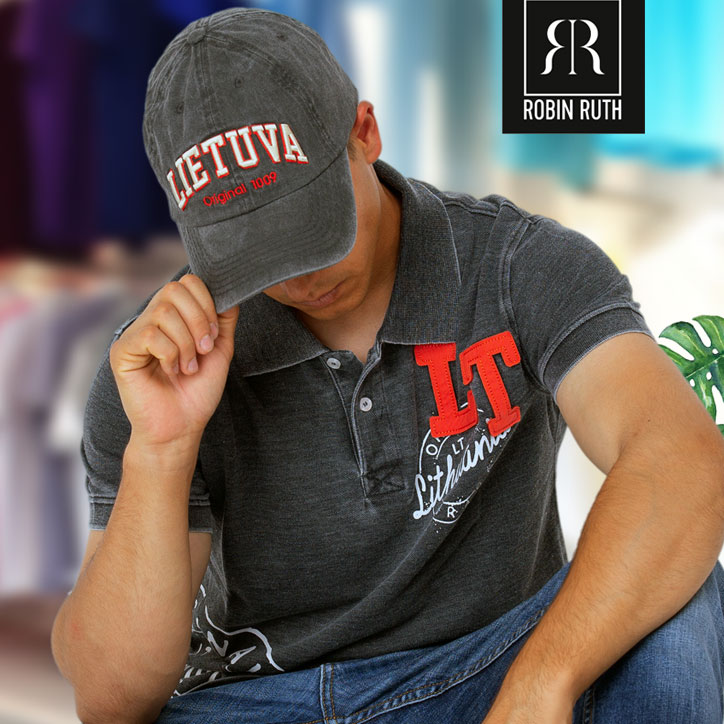 Stilingi polo tipo marškinėliai „Lithuania LT“ – puikus pasirinkimas norintiems pasipuošti patriotiškai ir moderniai. Tamsiai pilkos spalvos audinys iš 100% medvilnės maloniai priglunda prie kūno, o garintas dažymas suteikia unikalų vizualinį efektą.
