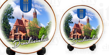 Suvenyras – porcelianinė lėkštutė su stoveliu – Druskininkai Bažnyčia.