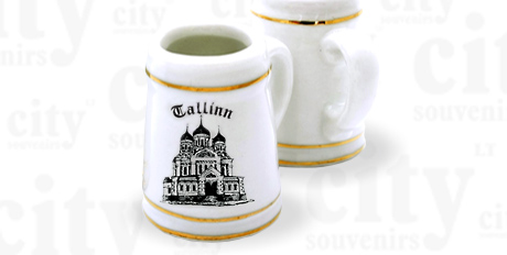 Suvenyras – porcelianinis bokaliukas Talinas A.Nevsky. Bokaliukas papuoštas auksinėmis juostelėmis, supakuotas skaidrioje plastikinėje dėžutėje.