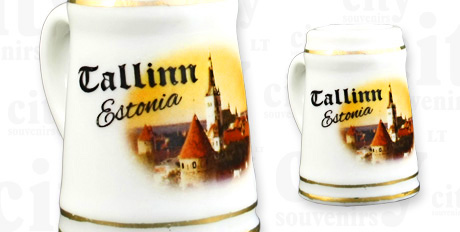 Suvenyras – porcelianinis bokaliukas Talinas. Bokaliukas papuoštas auksinėmis juostelėmis, supakuotas skaidrioje plastikinėje dėžutėje.