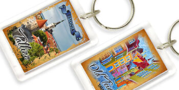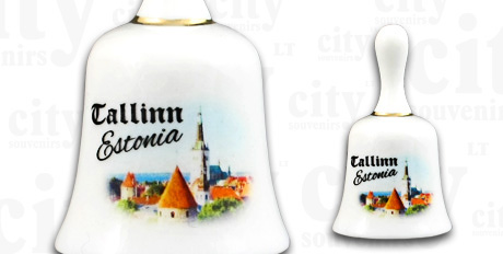 Suvenyras – porcelianinis mini varpelis Panorama Talinas, Estija. Varpelis papuoštas auksu.
