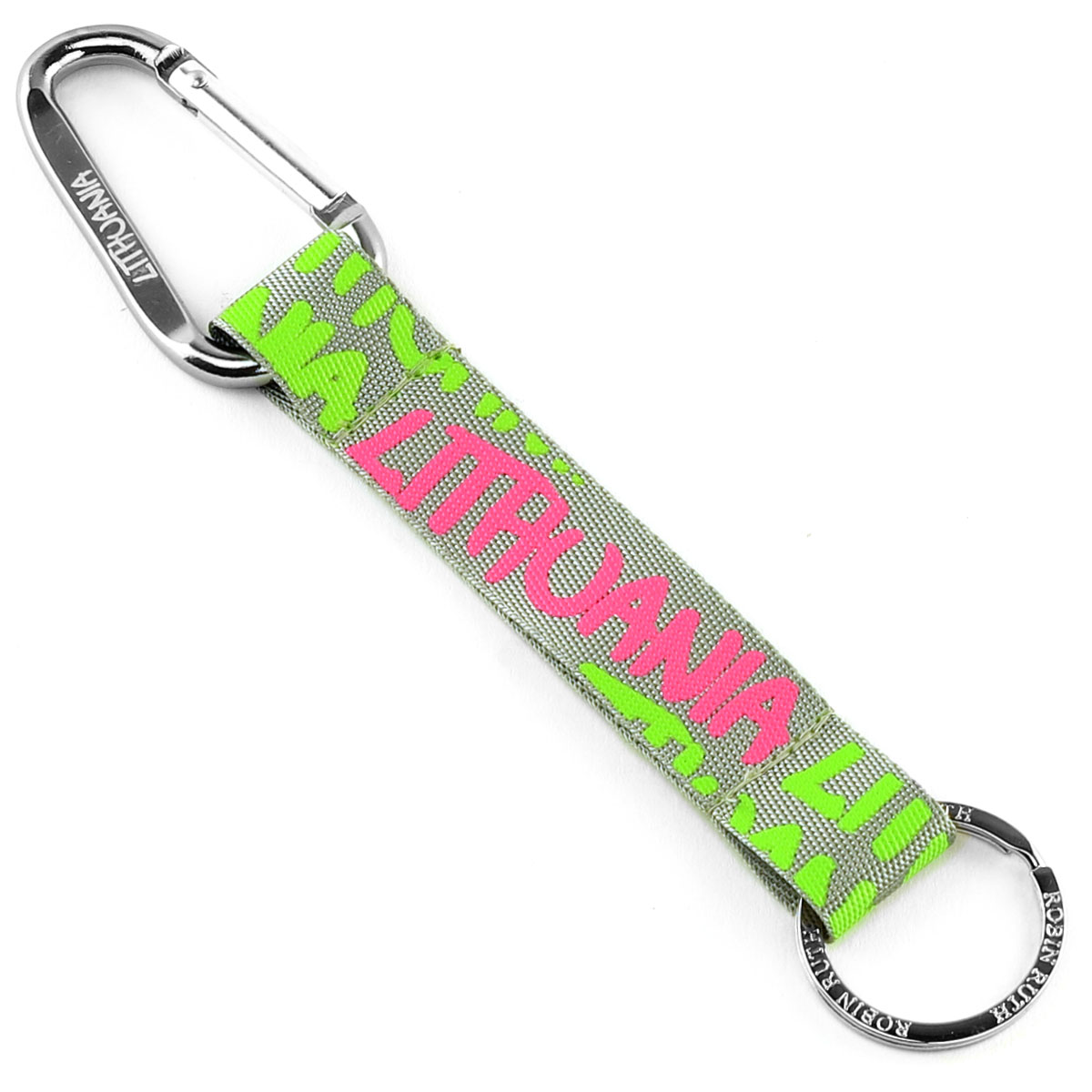 Modernus ir praktiškas raktų pakabukas su užrašu „LITHUANIA“ – tai originalus Robin Ruth aksesuaras, sukurtas aktyviam kasdieniam naudojimui ir stilingam Lietuvos reprezentavimui. Pilkos spalvos tekstilinė juostelė su ryškiais neoniniais akcentais suteikia gaminiui išskirtinį, jaunatvišką dizainą.