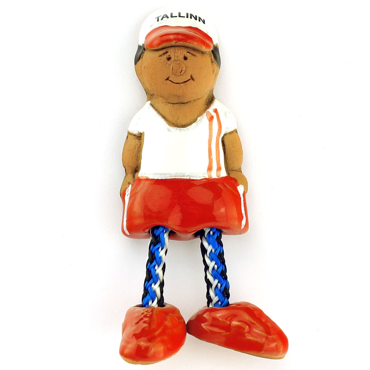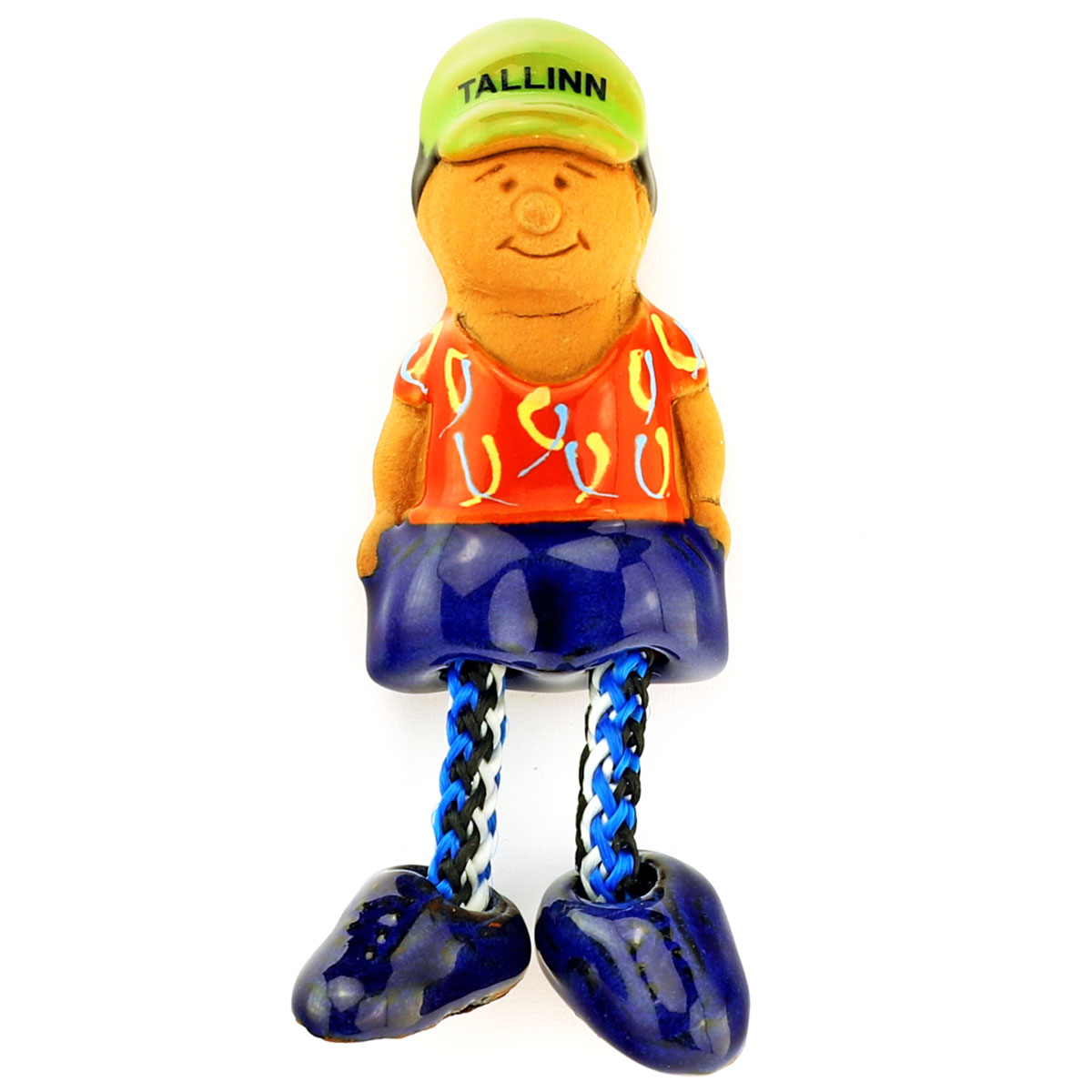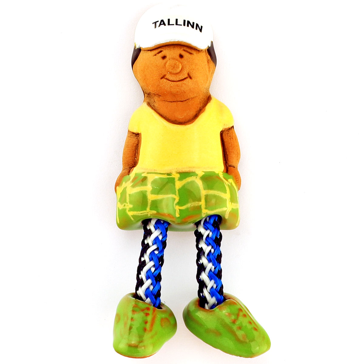 Magnetas vaizduoja turistą su kepure „Tallinn“ ir spalvingais drabužiais. Žaisminga detalė – judančios virvelinės kojytės, kurios suteikia magnetui gyvybingumo ir išskirtinumo.
