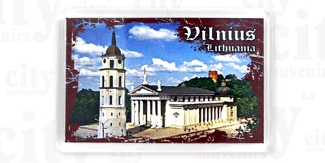 Suvenyras, plastikinis rėmelis – magnetukas su Vilniaus vaizdu.