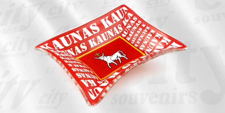 Suvenyras – Dekoratyvinė stiklinė lėkštutė Kaunas.