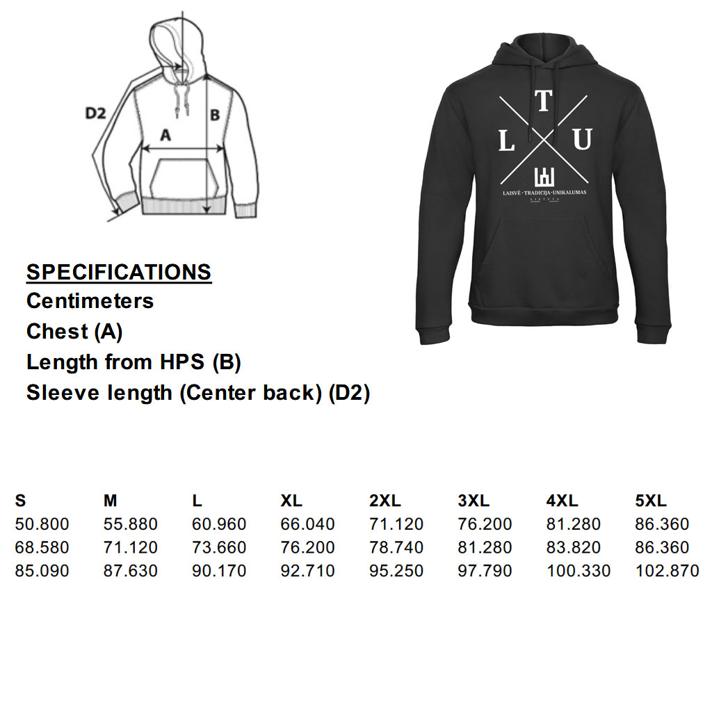 Džemperio priekyje išryškintas minimalistinis LTU kryžminio dizaino motyvas, papildytas fraze „Laisvė • Tradicija • Unikalumas“, simbolizuojančia svarbiausias Lietuvos vertybes. Dizainą subtiliai papildo Lietuvos trispalvės akcentas, suteikiantis nacionalinį identitetą.