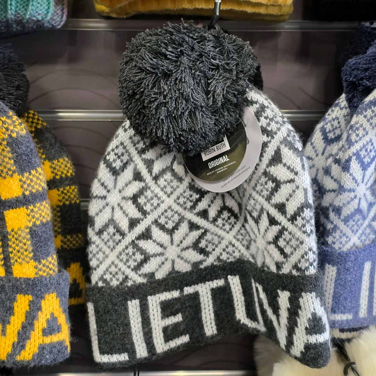 Pilka kepurė LIETUVA su kutu – klasikinis ir šiltas pasirinkimas.
