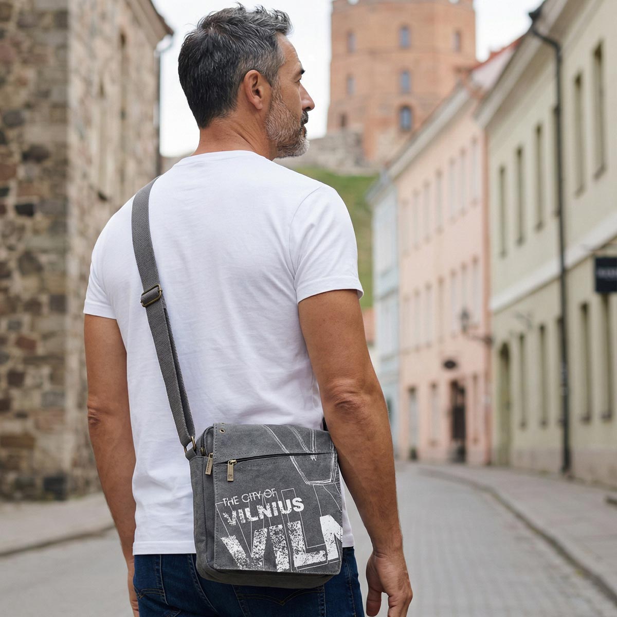 Moderni ir funkcionali unisex rankinė per petį „Vilnius City“ – puikus pasirinkimas tiek kasdieniam naudojimui, tiek kelionėms. Minimalistinis miesto stiliaus dizainas su „Vilnius“ užrašu suteikia rankinei išskirtinumo ir pabrėžia lietuvišką identitetą.